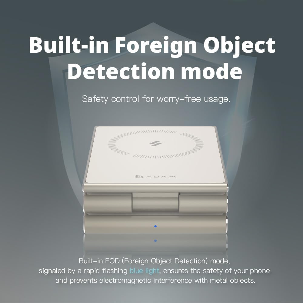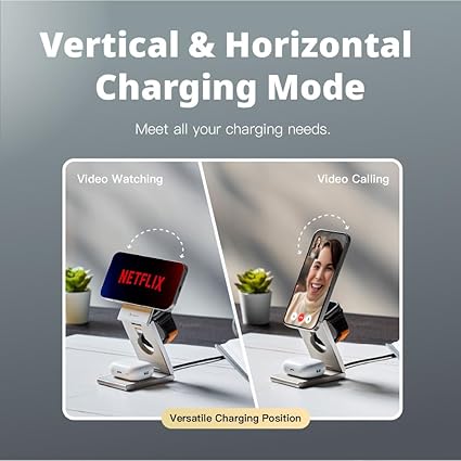 Mag Z Magnetic 3-in-1 Foldable Travel Charging Station - A stylish and practical charging station that charges your iPhone, Apple Watch, Samsung Galaxy Watch and AirPods at the same time, offering fast charging convenience - The foldable design minimizes the size for storage and travel convenience. The included USB-C charging cable supports up to 15W of power - Compatible with the AirPods MagSafe case, providing three different ways of charging for optimal flexibility - Premium crafted solid metal design complements the decor while ensuring your Apple devices are ready to go every day - The Mag Z offers secure magnetic connections and precise alignment for effortless messaging and video viewing while your iPhone is wirelessly charged both standing or horizontal positions. - Features FOD (Foreign Object Detection), OCP (Over-current Protection), and OVP (Over-voltage Protection) functions to protect your iPhone and other accessories from accidental electromagnetic damage - 3-year limited warranty