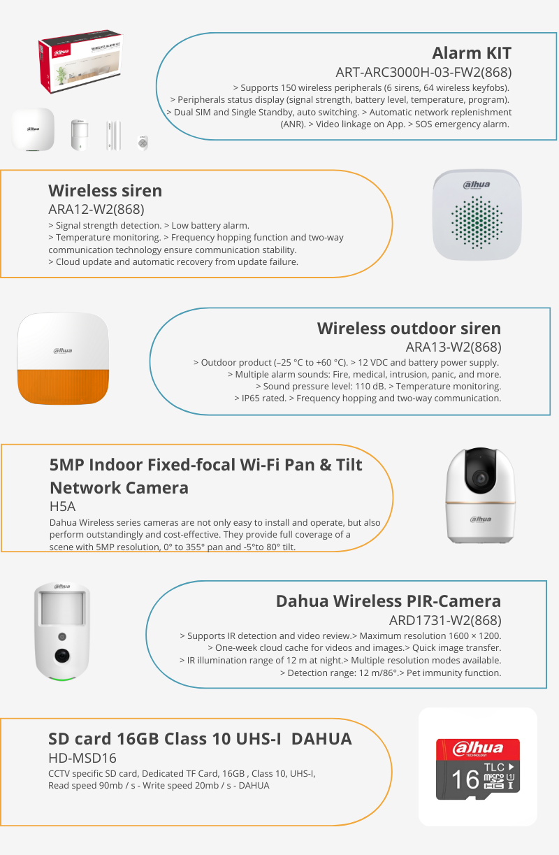 ARC3000H-03 -FW2-868 Dahua - ART-ARC3000H-03-FW2-868 - Alarm control panel, wireless remote control, wireless door magnetic sensor, and wireless PIR sensor - Link