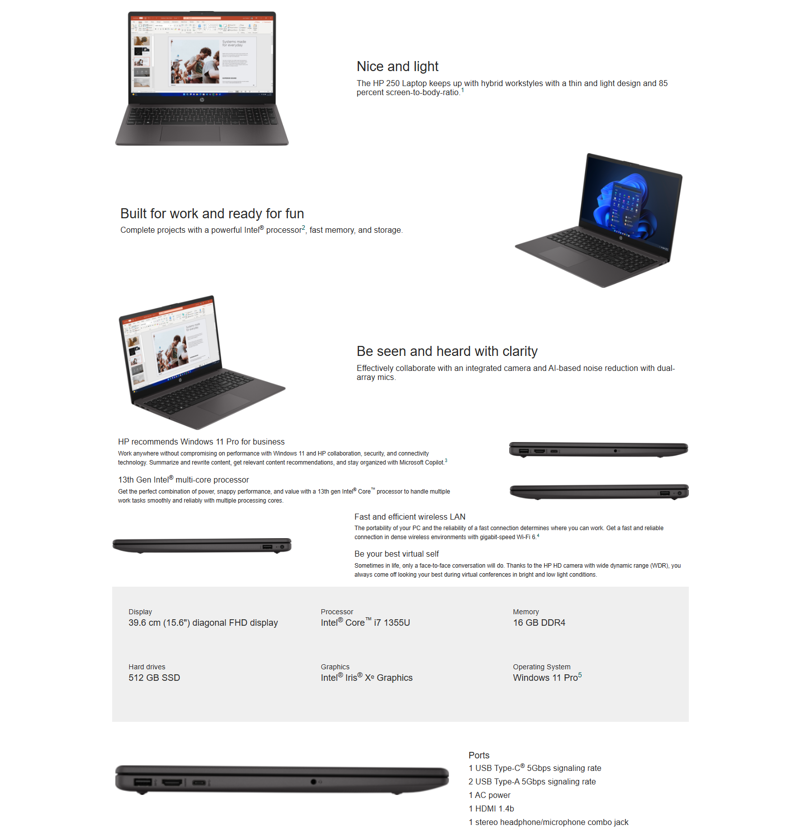 | USB | 1 USB Type-C® 5Gbps signaling rate 2 USB Type-A 5Gbps signaling rate 1 AC power 1 HDMI 1.4b 1 stereo headphone/microphone combo jack |