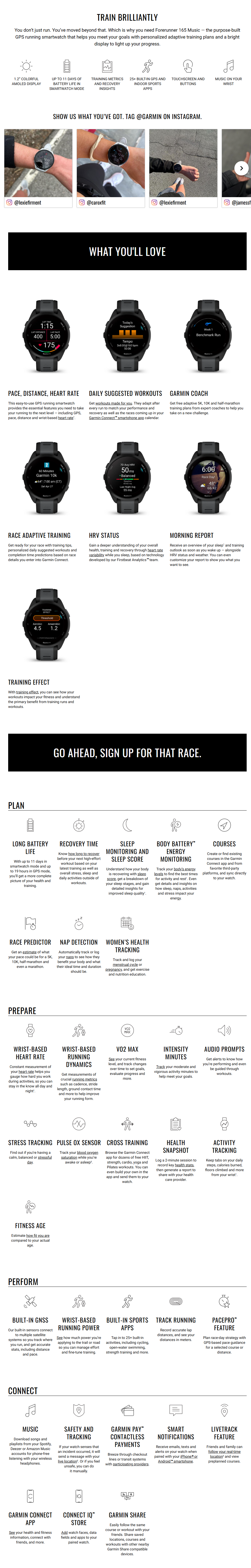 - Garmin Forerunner 165 Music, Running Smartwatch, Colorful AMOLED Display, Training Metrics and Recovery Insights, Music on Your Wrist, Black - 010-02863-30